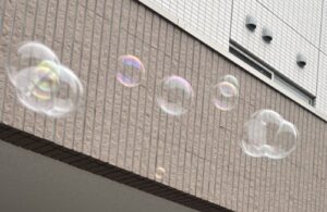 静明館の玄関先でシャボン玉を飛ばすと、子供のころの気持ちを思い出しました。