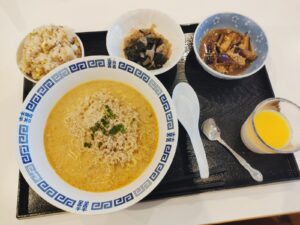 担々麺と言えば辛さ、コク、香りの三位一体が魅力ですよね。 私も改めて実感し、堪能しました。 食事は入居者にも提供しているので、汁も飲めるように辛さを控えめにしてくれていたようです。